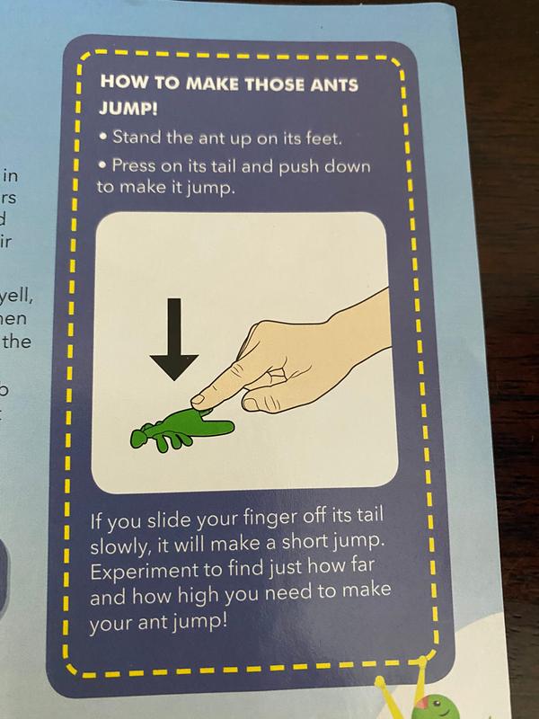By pressing on the tail and letting your finger slide of the ant will jump sometimes quite high. Press your finger down on the tail of the Ant. Now try another one.